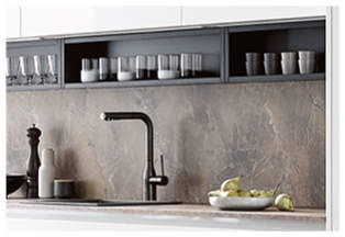 FRONTEN:50/51 Leonardo - H110 Weiss53 Denver Line - S115 SchwarzKORPUS:K110 WeissK172 GraphitGRIFF:Trendline - WeissARBEITSPLATTE:X0C3 Marmor GoldGranit - Nero AssolutoHIGHLIGHTS:Weinkühlschrank mit Möbelfront.Offene Innenauszüge mit Dekorblende.Auszüge mit nur einer Griffleiste oben, darunter TipOn.MEHRWERTE:Frontverlängerung nach oben.