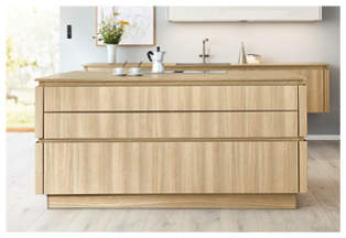 FRONTEN:64 Nizza - C175 Soft grey56 Silvia Wood Classic - K47 Eiche BlondeKORPUS:K47 Eiche BlondeGRIFF:Trendline Vario 3 - Eiche BlondeARBEITSPLATTE:047 Eiche BlondeHIGHLIGHTS:Schwerlastaufhängung für die schwebende Optik.Durchgangstür zum Hauswirtschaftsraum.Verstecktes Home-Office.MEHRWERTE:Überbreite Fronten.OneLine Korpus - innen und außen farbgleich.