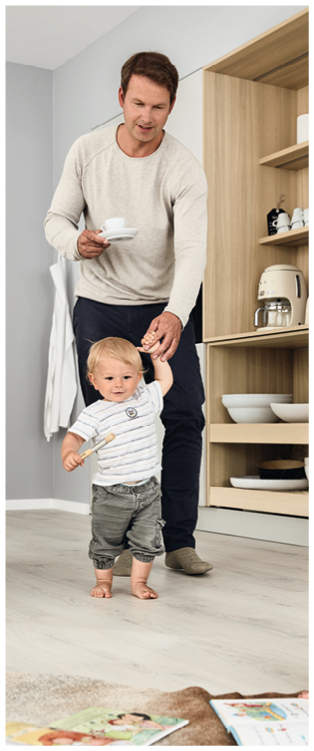 Hand in Hand und Raum für Raum. Wie praktisch, wenn Kochen, Wohnen und Hauswirtschaft so harmonisch verschmelzen – dann bleibt endlich mehr Zeit für die wirklich wichtigen Dinge im Leben.