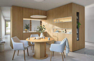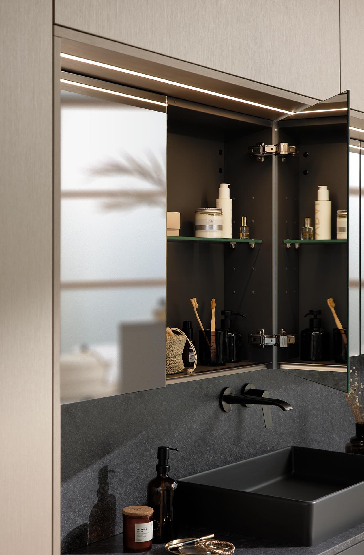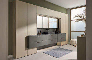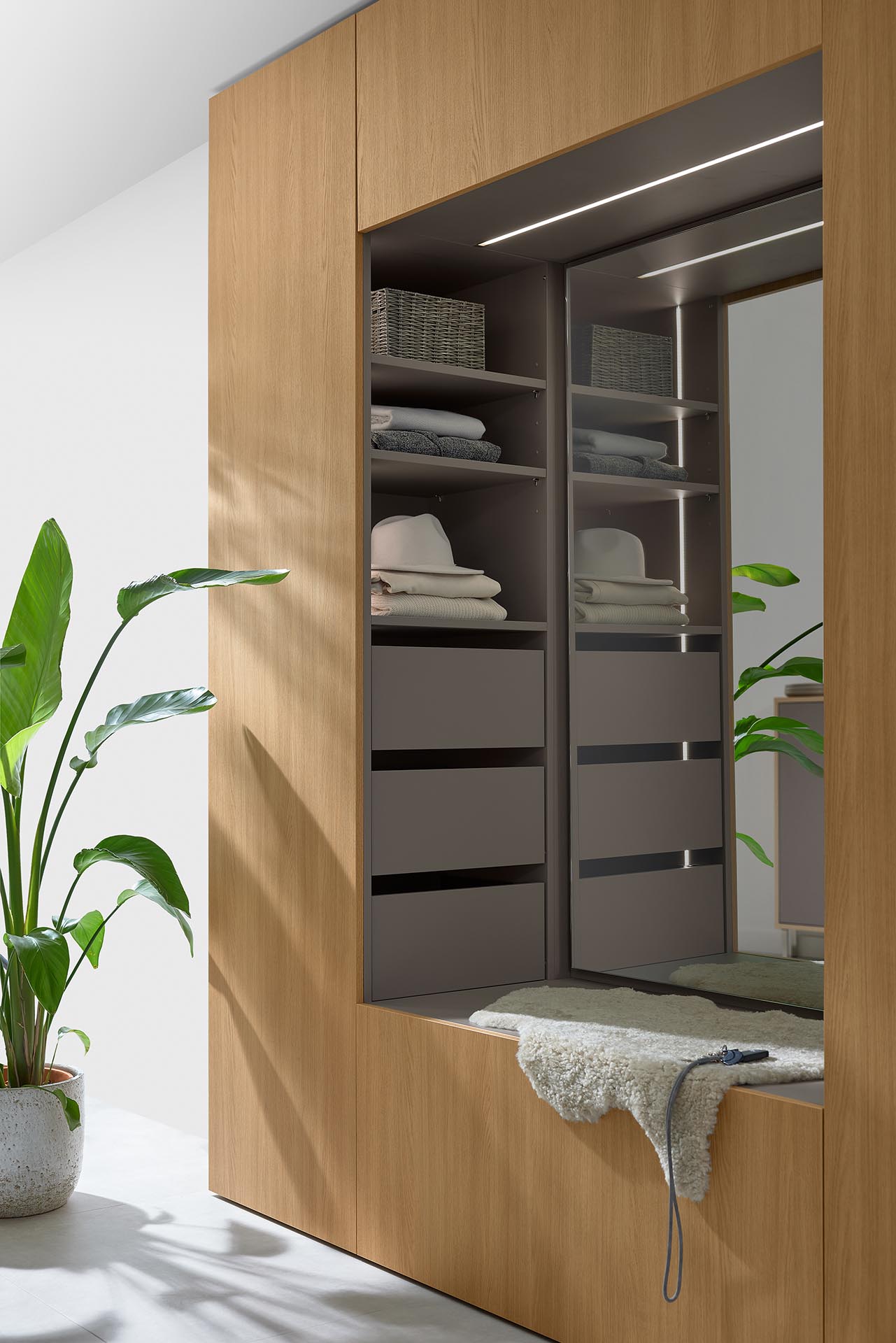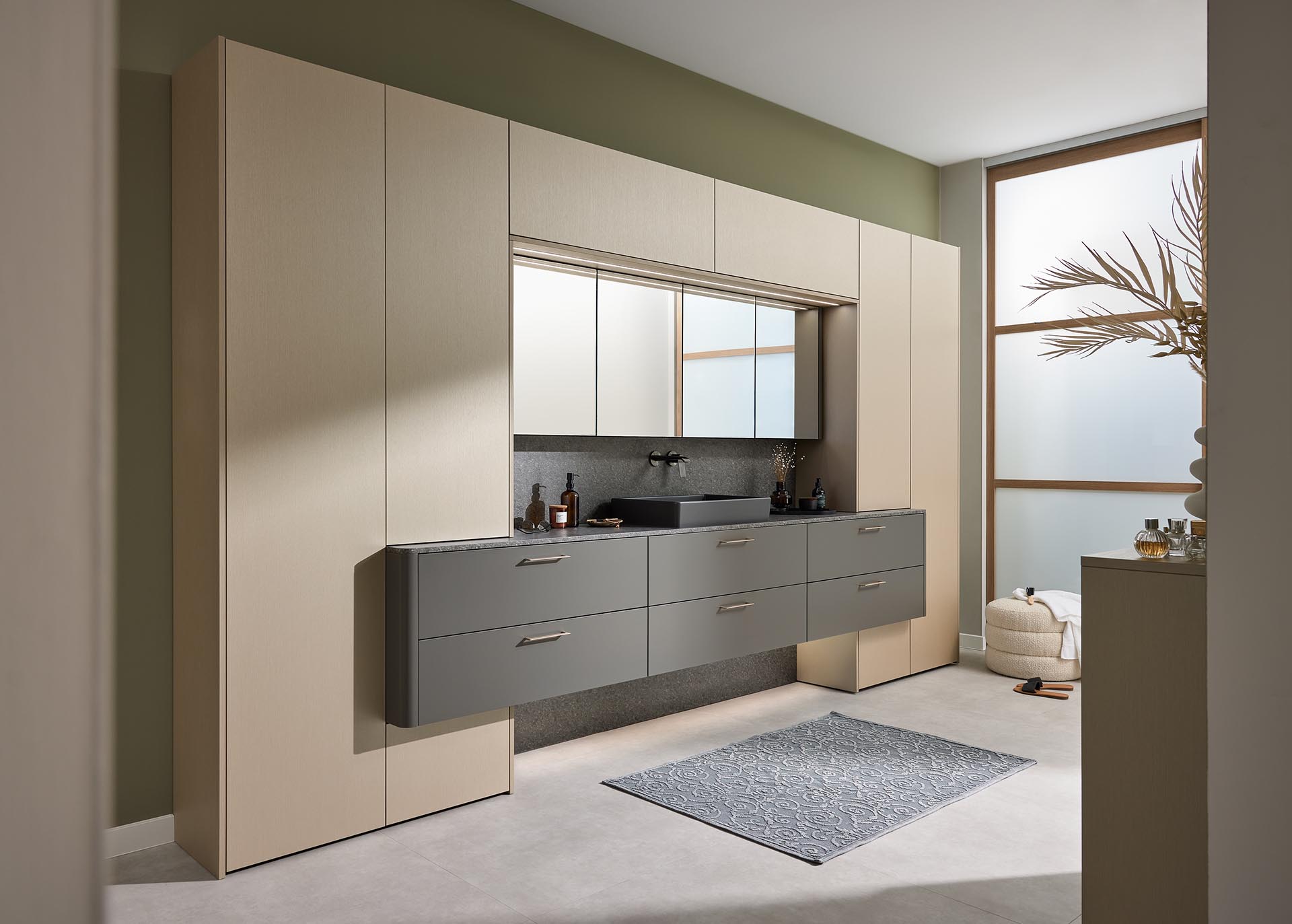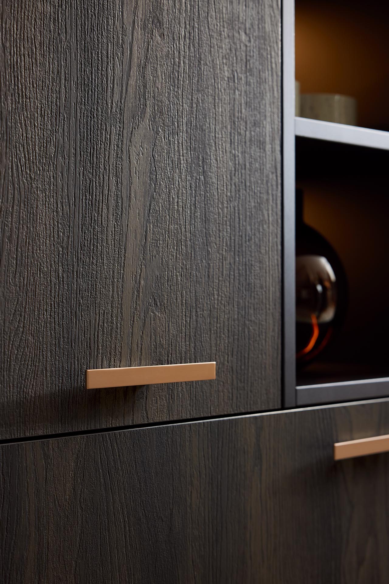 Another technical innovation also impressed: the carcase edging of the 19 mm OneLine carcase is now freely selectable. This guarantees maximum freedom of design – the furniture can be planned entirely in the desired wood decor, while the carcase edging can, for example, be matched tone-on-tone with the front. This creates well-conceived, aesthetically sophisticated solutions for the living spaces of today.