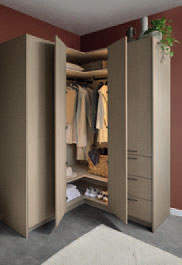 These decors can be combined in a particularly harmonious way thanks to the wide range of solid colours from the Beckermann colour portfolio. Two new favourite colours are especially striking: the soft white tone “Cosy White” and the classy, deep blue “Midnight”. Both colours are available throughout almost all the model ranges and materials – from melamine resin to lacquer.