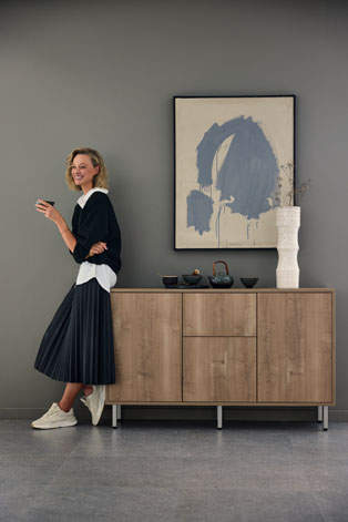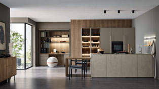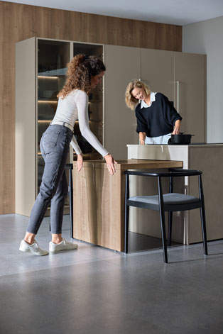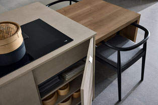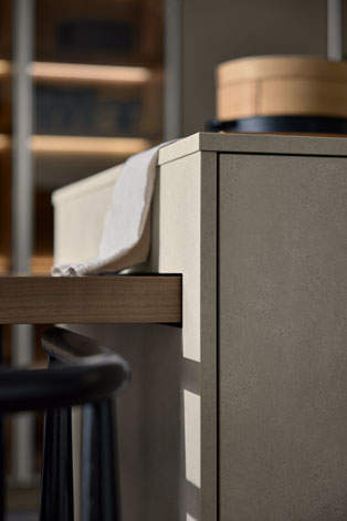 FRONTS:56 Silvia Wood - K261 Sweet Cherry68 Stone - K303 Minera Greige65 Lima - K170 FangoCARCASE:K170 FangoK303 Minera GreigeHANDLE:2V, 3SWORKTOP:302 Minera GreigeHIGHLIGHTS:extendable dining tableInteroLine line lightingBaking tray shelfGlass doors with bronze glassADDITIONAL BENEFITS:19 mm carcase.00Made-to-measure doors.11Front extension.222Front projection to the side.333333