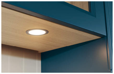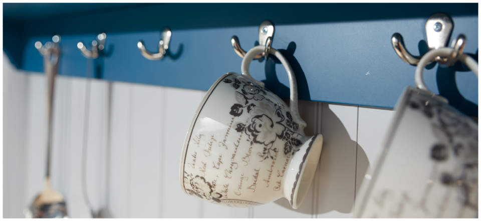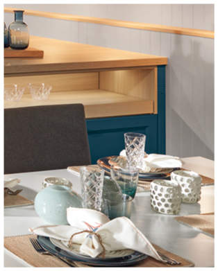 The interplay of colours, shapes and materials such as wood, glass and metal allow plenty of scope for individual kitchen design. Decorative and practical details such as handles and shelves with a retro design create perfect kitchens for living.