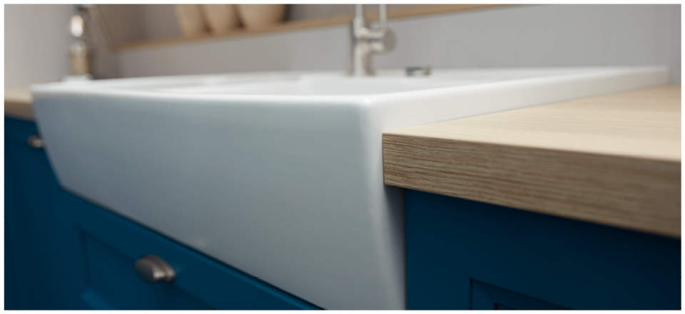 FRONTS:61 Monaco Matt - RAL 250 40 20CARCASE:K47 Eiche BlondeHANDLE:4M – pewter-colouredWORKTOP:047 Eiche BlondeHIGHLIGHTS:Glazed bar doors.Rear wall with panel design.Cabinet adapted for farmhouse sink.ADDITIONAL BENEFITS:Optimum alignment.Lacquering in special colours.