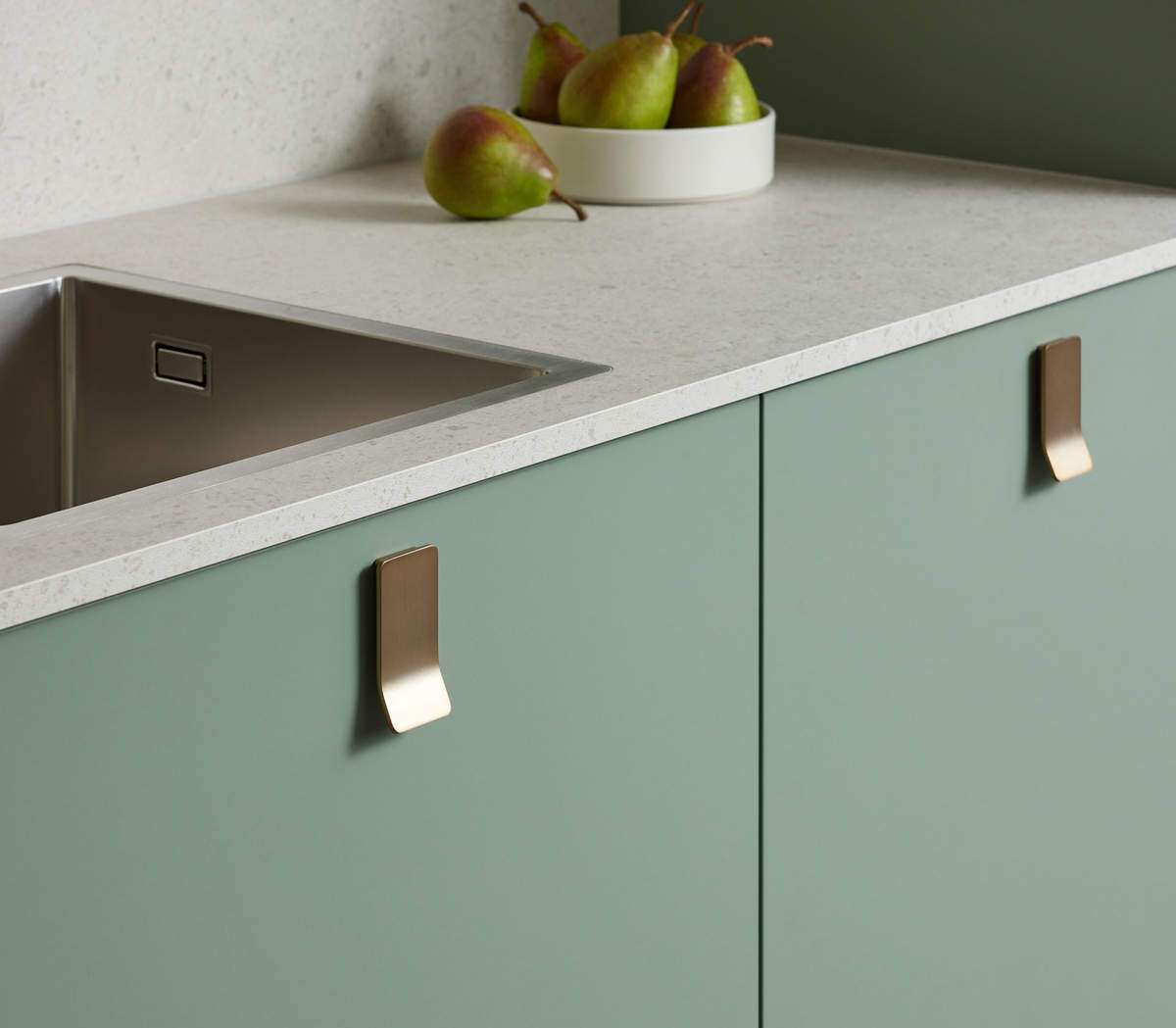 …is het scala aan warme kleuren, zoals brons - een aantrekkelijke metaal look, zowel in combinatie met model Alux (melamine decor) als bij de grepen en de korpuslijsten van de greeploze Trendline-serie.