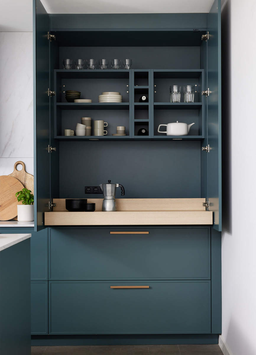 …zijn de multifunctionele hoge kast pantry's, bijvoorbeeld om hierin een kleine ontbijthoek, koffiebar of een sommeliercentrum te plannen. Daarvoor hebben wij zowel veelzijdige als praktische hoge kast pantrysets samengesteld, zodat onze hoge kasten wat betreft de inhoud en functie nu nog individueler gepland en ingericht kunnen worden.