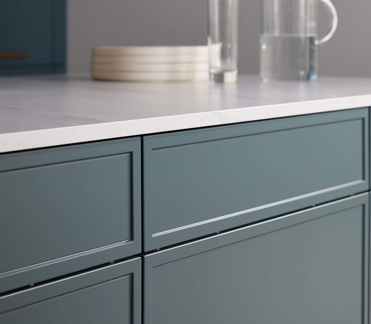 Wij hebben ons korpusconcept verder ontwikkeld: nadat wij in 2024 zijn overgestapt op 19 mm kasten hebben wij nu de diepte van bovenkasten gewijzigd van 330 mm naar 350 mm. Dat werd ook consequent doorgevoerd bij opzetkasten en voor meer onder- en hoge kastdieptes.