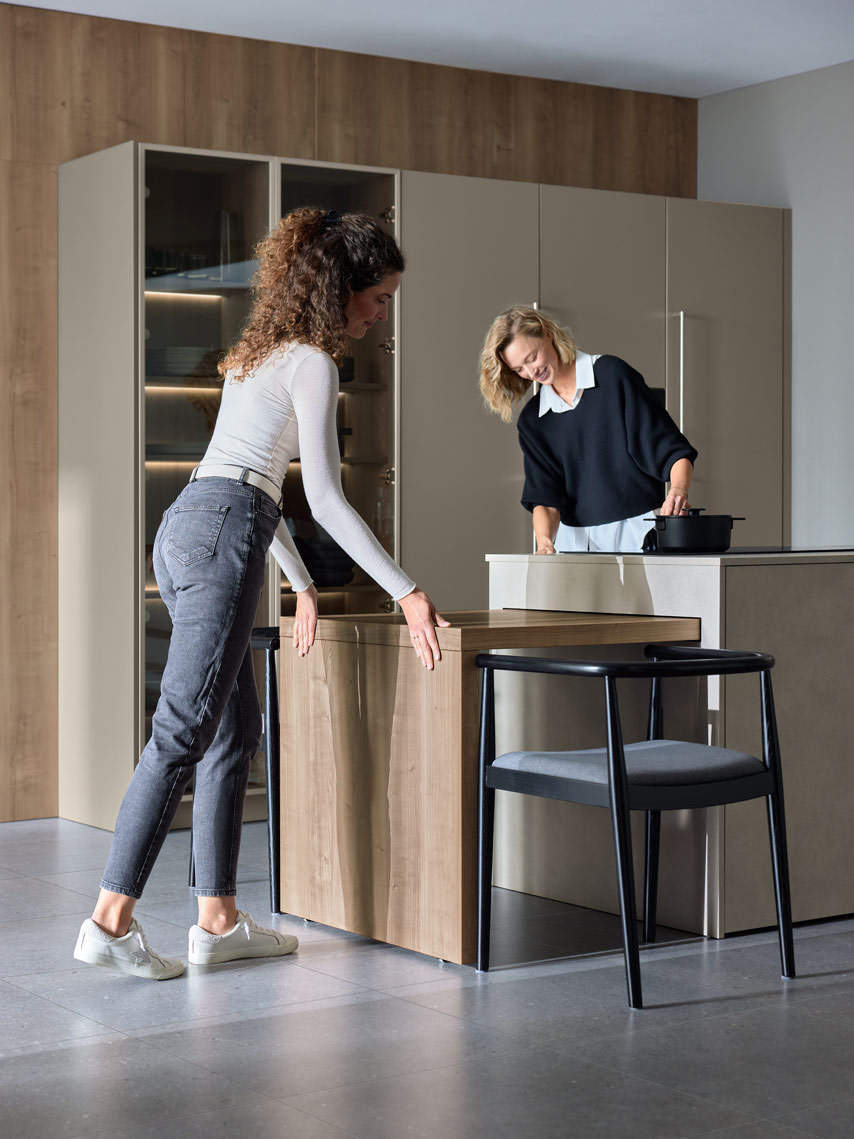 Directe bestellingen genereerde ook de nieuwe Flex Dining Table, een in het keukeneiland geïntegreerde uittrektafel voor maximaal zes personen. Dit door Beckermann zelf ontwikkelde concept sluit aan bij de trend van flexibele meubelelementen en vindt vooral gehoor bij het groeiend aantal eenpersoonshuishoudens met een klein woonoppervlak. Het tafelblad, in dit geval verborgen in een eiland, kan eenvoudig tot de gewenste lengte worden uitgetrokken en past zich hierdoor uitstekend aan iedere situatie aan.
